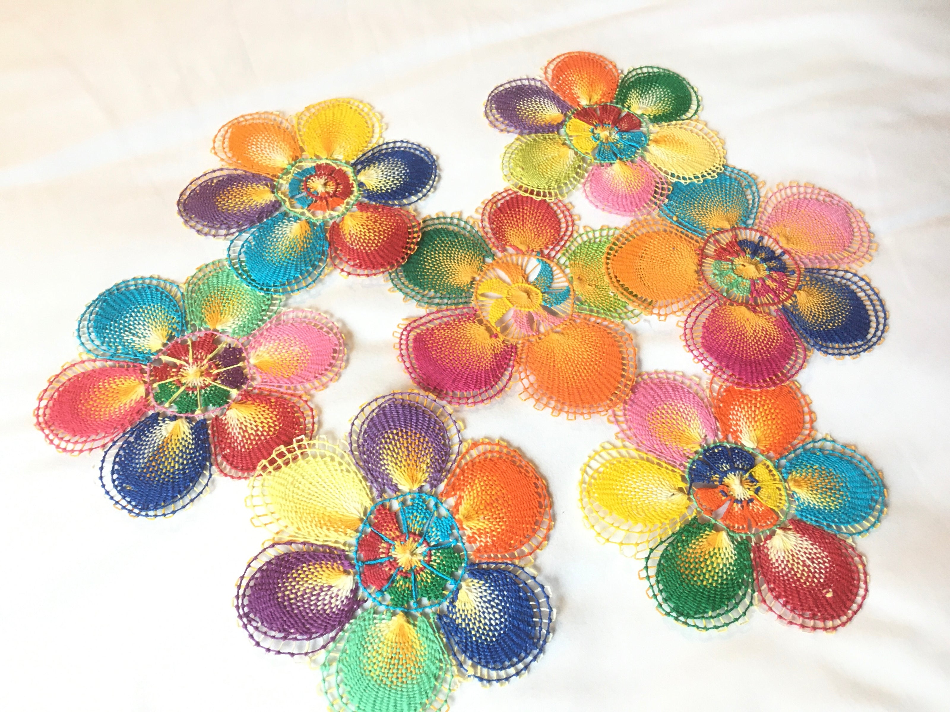 このアイテムへパラグアイの伝統的なレース編み。パラグアイの公用語・グアラニ語で「蜘蛛の巣」を意味します。様々な色合いの糸を使い、カラフルに模様を浮き立たせます。