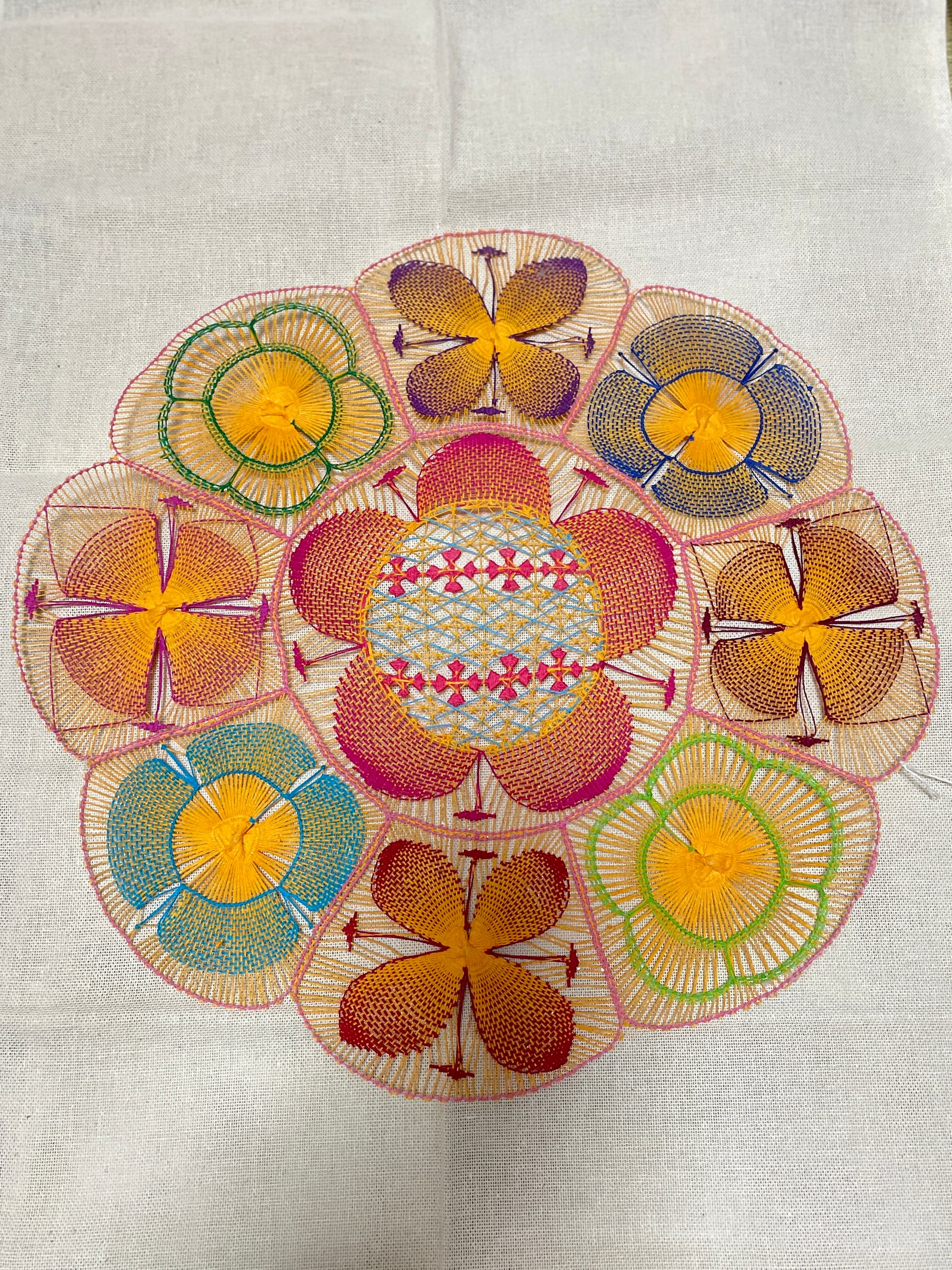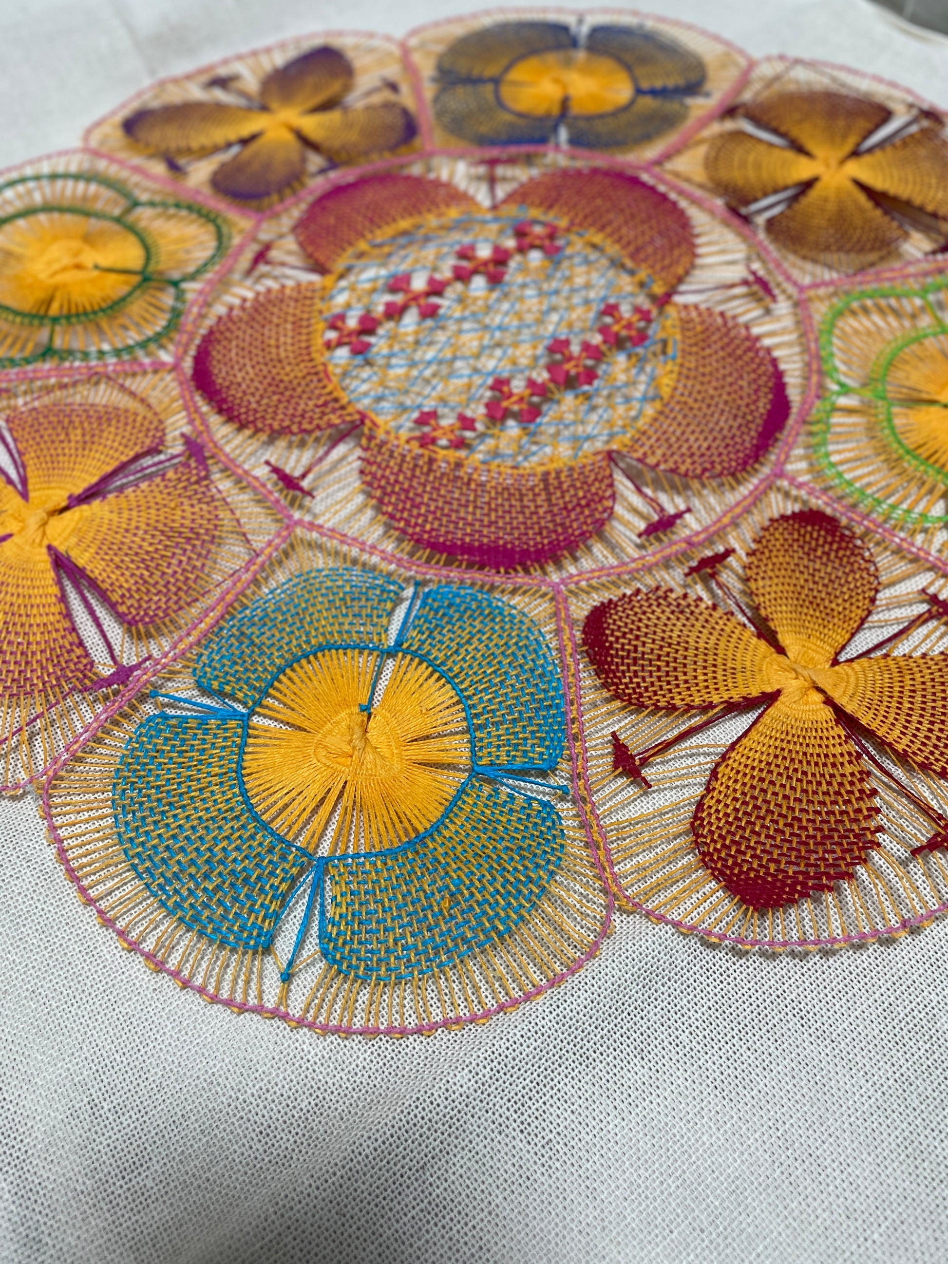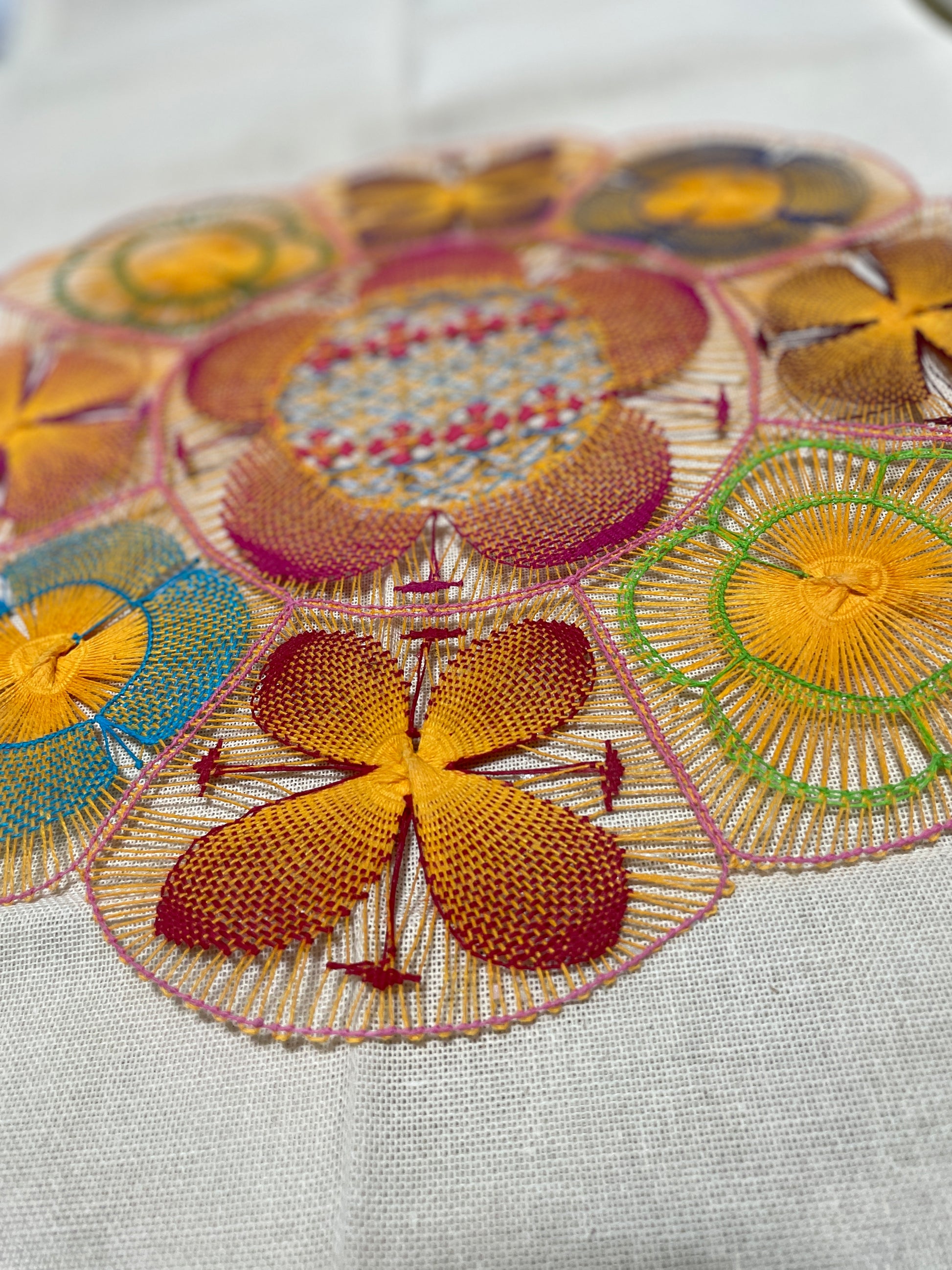 直径約40cmの大盤のニャンドゥティのドイリーです。