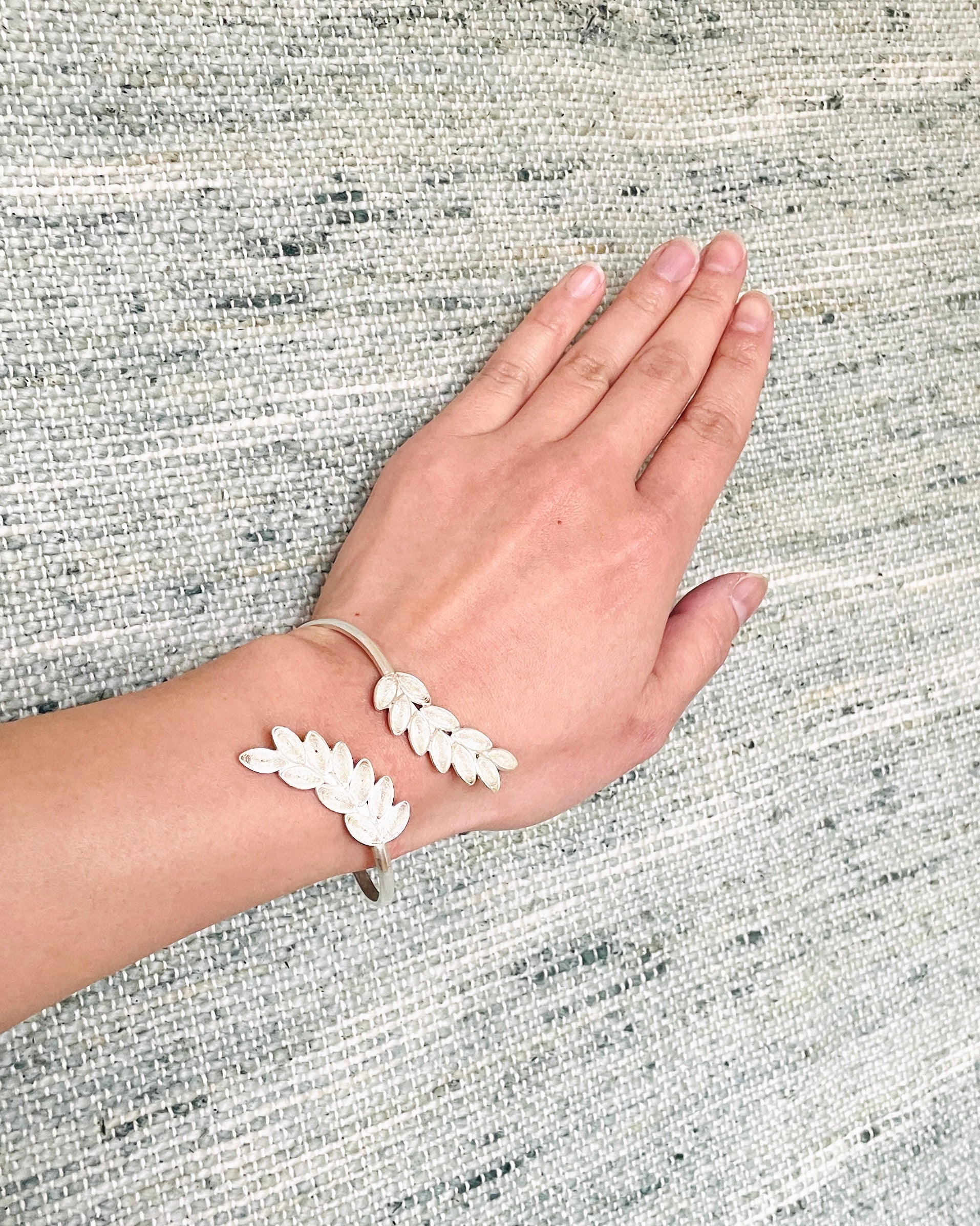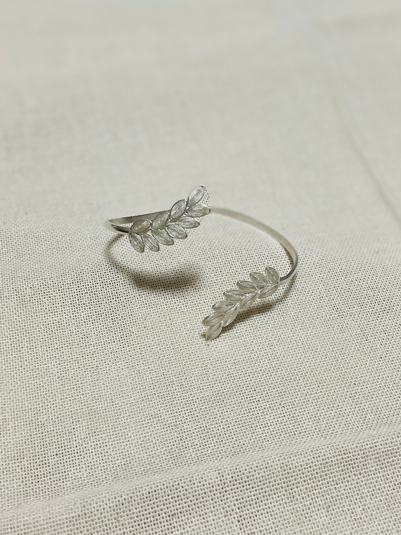 全てのスターリングシルバーの細い銀の糸で作られた、とても繊細な葉っぱのモチーフのバングルです。